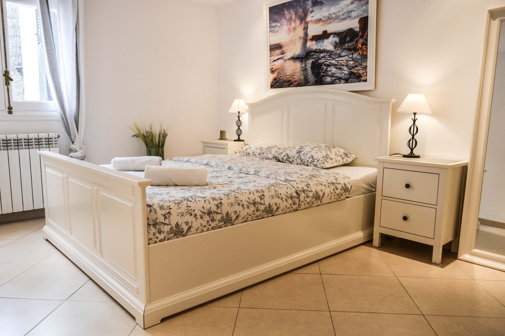 wahlweise einem Doppelbett oder zwei Einzelbetten, sowie zwei Badezimmer.